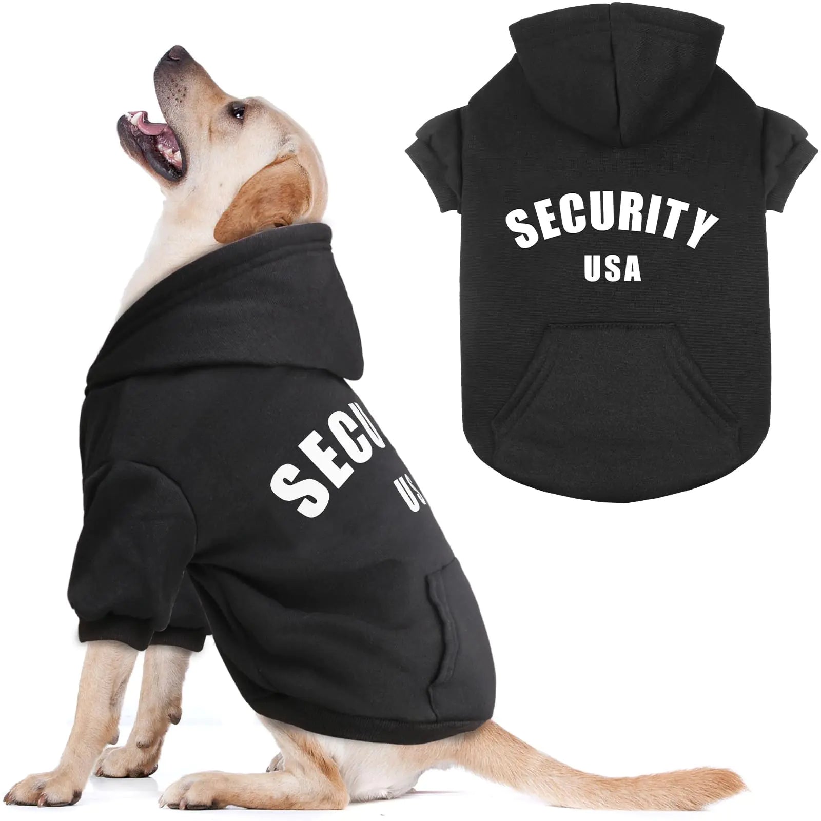 [EXTRAORDINARY SOFTNESS & COMFORT : Pamper your dog with our high-quality dog hoodie designed to offer the ultimate in softness and warmth. The soft brushed fleece interior provides a gentle cozy touch ensuring that your furry friend stays comfortable and stylish no matter the occasion. Perfect for snuggling up or strutting out in style! "VERSATILE FIT FOR MOST DOGS : Our dog hoodie is available in 6 sizes from XS to XXL designed to fit most dogs. Since every dog has a unique body shape its important to select the right size based on our size chart rather than relying on previous shopping experiences or your dogs weight." STYLISH & PRACTICAL : Featuring a bold "SECURITY" print on the back this dog hoodie makes a fun statement. The high-quality screen printing ensures the design stays vibrant without peeling or fading. Plus the charming little pocket adds both style and function perfect for holding treats or small toys. "IDEAL FOR ALL SEASONS : Whether its a brisk fall morning or a chilly winter day this dog hoodie is designed to keep your dog comfortable without overheating. Lightweight yet warm its the perfect choice for year-round wear making it suitable for everyday activities outdoor adventures or as a thoughtful gift for any dog lover." DURABLE & EASY CARE : Built with premium craftsmanship and high-density stitching this dog hoodie is made to last through all of your dog’s playful antics and frequent washes. It’s machine washable for your convenience so you can keep your dog looking and feeling great with minimal effort.]